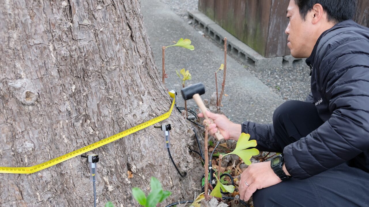 木槌による打診や鋼棒による空洞を探す為の貫入試験などの簡易的な確認も含め、まずは「木そのものがどんな状態か」を把握します。